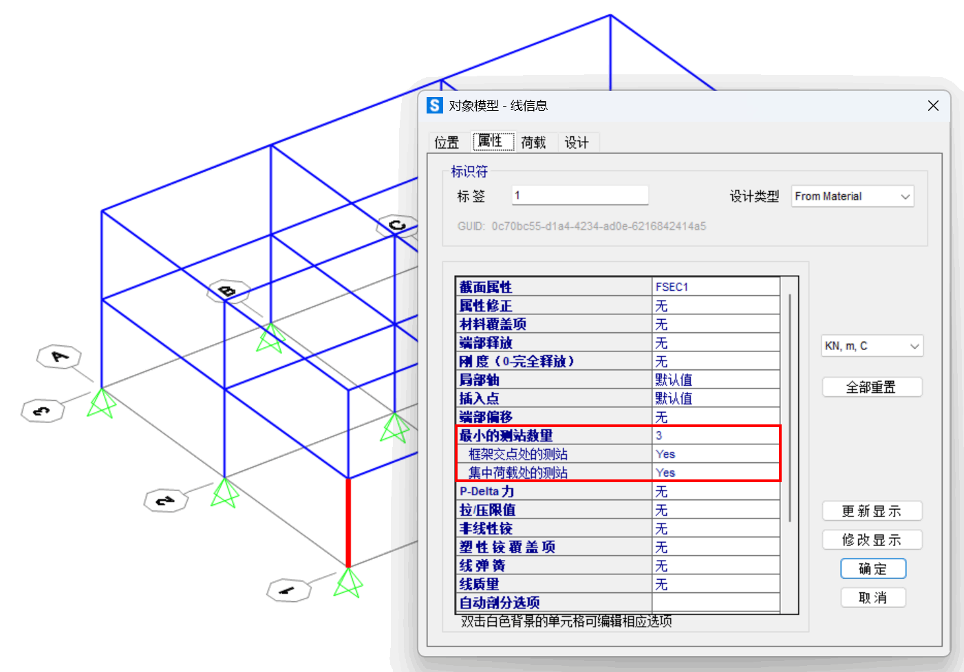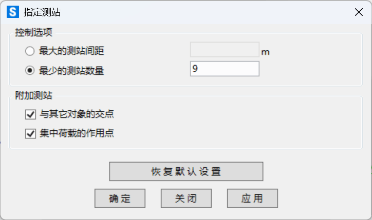 最少的测站数量:输入的数值必须大于或等于2。这是因为框架对象的两端节点(即i端和j端)必须作为测站,用于输出和显示截面结果。