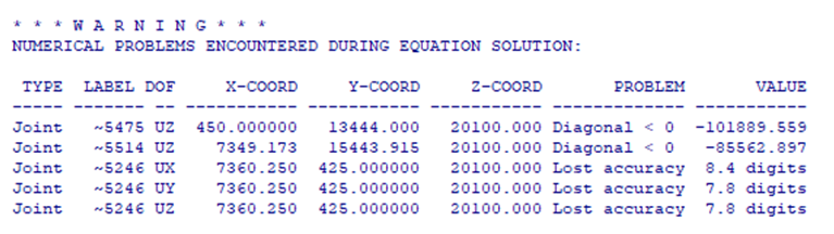 如图6所示为某ETABS模型的报错信息。需要注意:SAP2000报错中的LABEL表示节点标签,而ETABS报错中的LABEL表示节点唯一名。