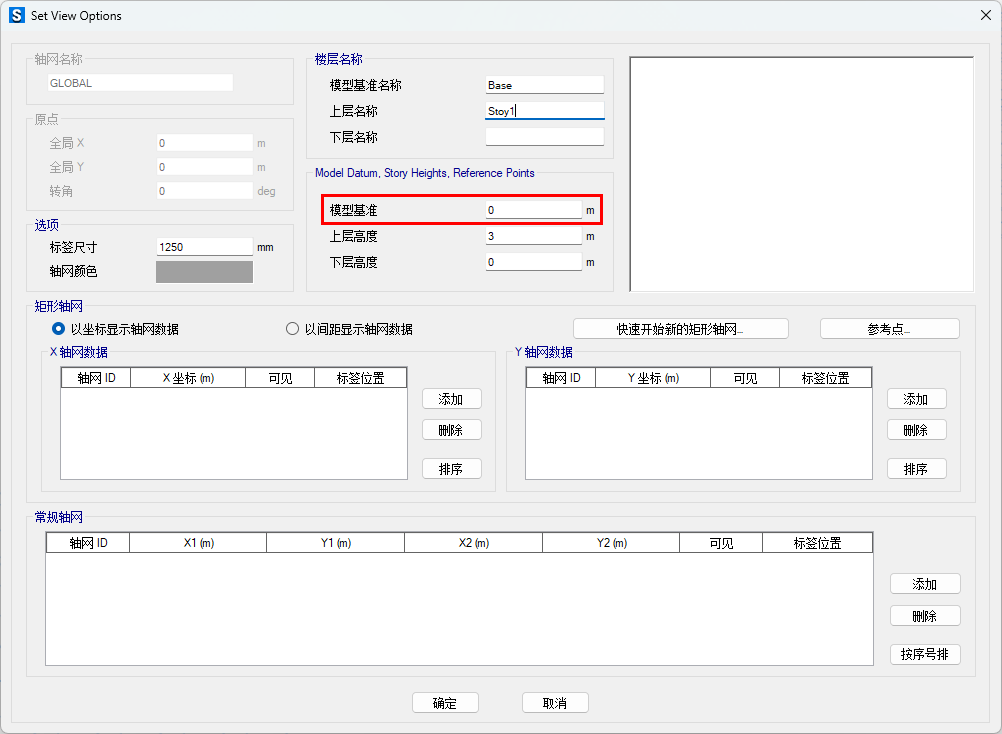 SAFE主要用于楼板体系和基础建模,软件仅定义了一层的概念。与 ETABS 可用于多层上部结构不同,SAFE通过模型基准(Model Datum)作为建模和计算的参考标高,所有水平构件均应在该标高进行建模。