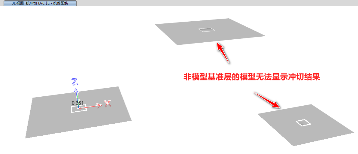 若将模型(包含各种对象和设计板带)移动到其他标高,程序在部分情况下仍可能显示设计结果(如板带配筋、冲切校核等)。然而,CSI官方明确指出:所有水平构件都应在模型基准层建模,否则结果可能无法显示或者不可靠。如图2所示,非模型基准层的板无法显示有限元设计结果和冲切结果。