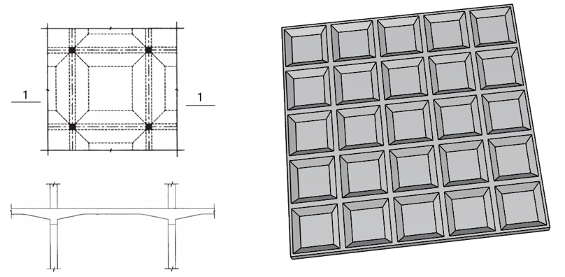 1)首先,根据单个板块的外轮廓及加腋区尺寸建立轴网,并绘制一块加腋区的板件,类似下图。