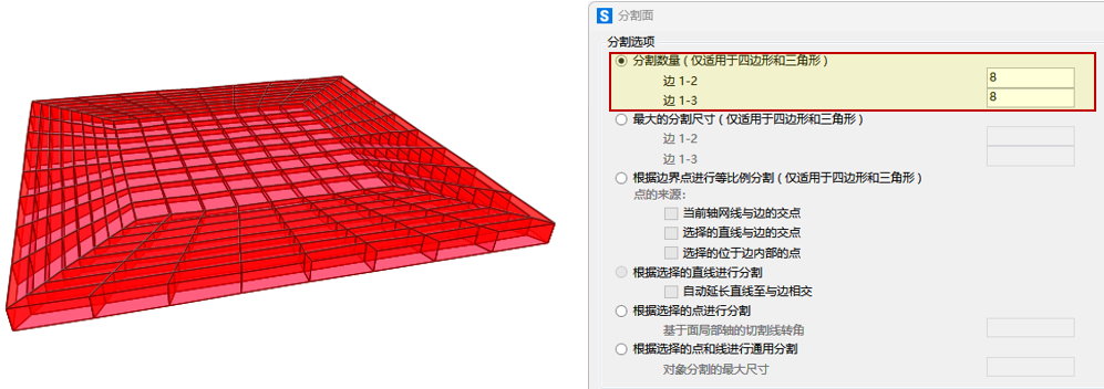 4通过边数控制网络划分,保证节点对齐,这里将其划分为 8 份,划分后效果如下。完成单块加腋板的建模后,可对其进行移动、复制等操作,创建用户所需的结构形式。