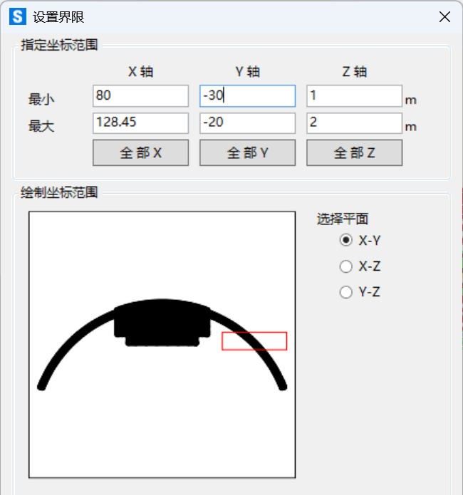 首先,对于较大的模型,建议在定位前先通过【视图>设置视图界限】缩小查找范围。警告信息中会提供有限元节点的坐标,可根据该坐标设置视图范围,使视图中仅显示该范围内的构件。